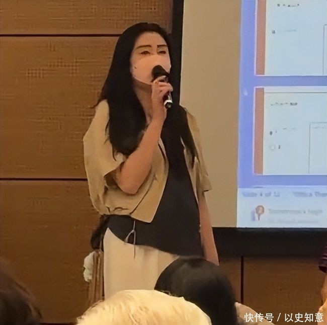 登台演讲时,面部轮廓更为清晰,双下巴自然浮现,腹部微隆使宽松衣料撑起柔和弧度,身形圆润饱满,与记忆中那个纤腰楚楚、眉目如画的古典美人形象,形成鲜明对照。