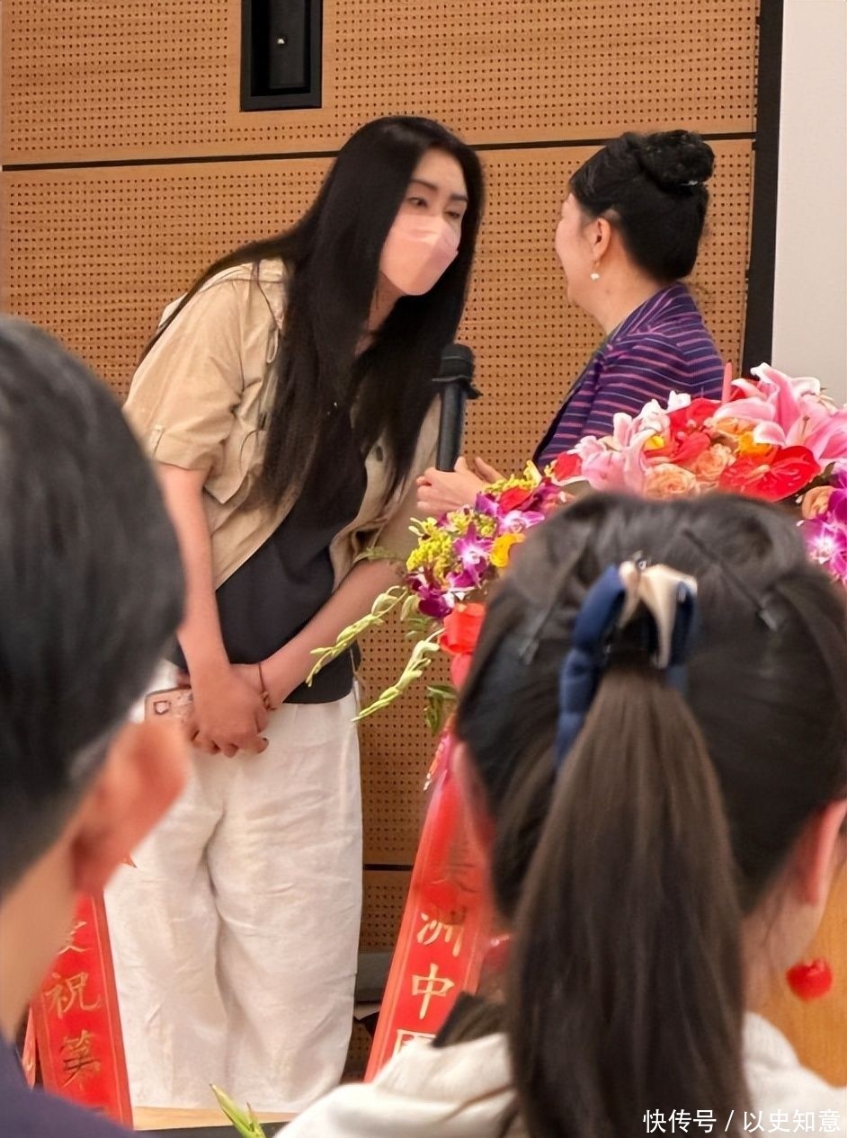 整场活动她多数时间佩戴口罩,但仅露出的眼周区域,已清晰勾勒出时光流转的印记——眼窝凹陷加深,眼神少了往昔的明澈光亮与灵动神采,多了一份沉静与内敛。